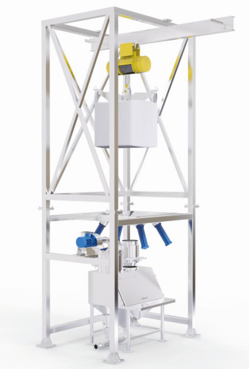 噸包拆包機采用設(shè)備自帶的電動葫蘆、叉車、行車進行物料提升,有效降低了人工勞動強度,拆包處理量大,400KG~3T均可。